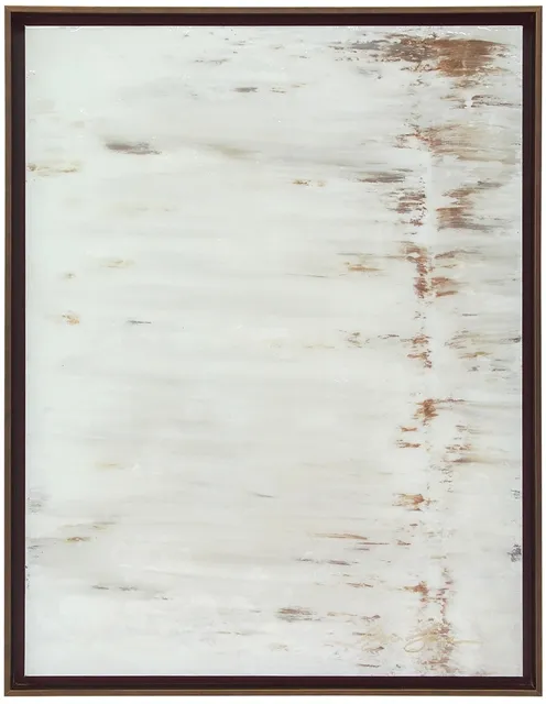 35"Wx46"H Burning The Candle At Both Ends II. Alabama artist Bonnie Fuch's original painting in earthy umber and ivory has been reproduced as a giclee on canvas. The pebbled vitreous surface treatment reproduces the unusual finish on the original work. The canvas floats in a wooden gallery frame with a dark bronze face with satin black inside and out.