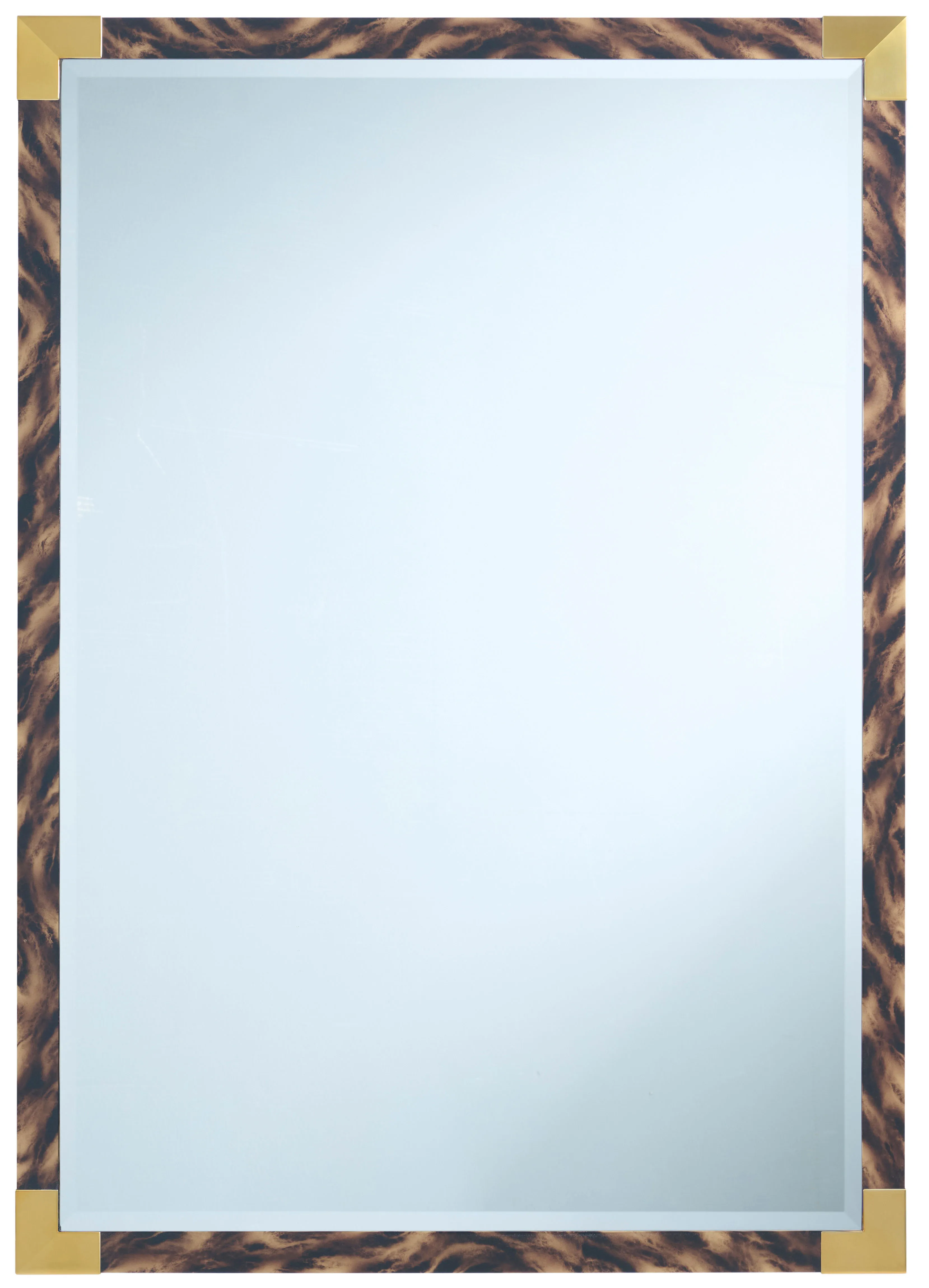The Arakan Rectangular Mirror has been crafted from hand-painted tortoiseshell faux horn, allowing it to bring a warm, natural touch to its surroundings. This elegant geometric piece features a rectangular beveled mirror plate with brass-tone stainless steel corner accents and comes outfitted with pre-fitted hanging strips.