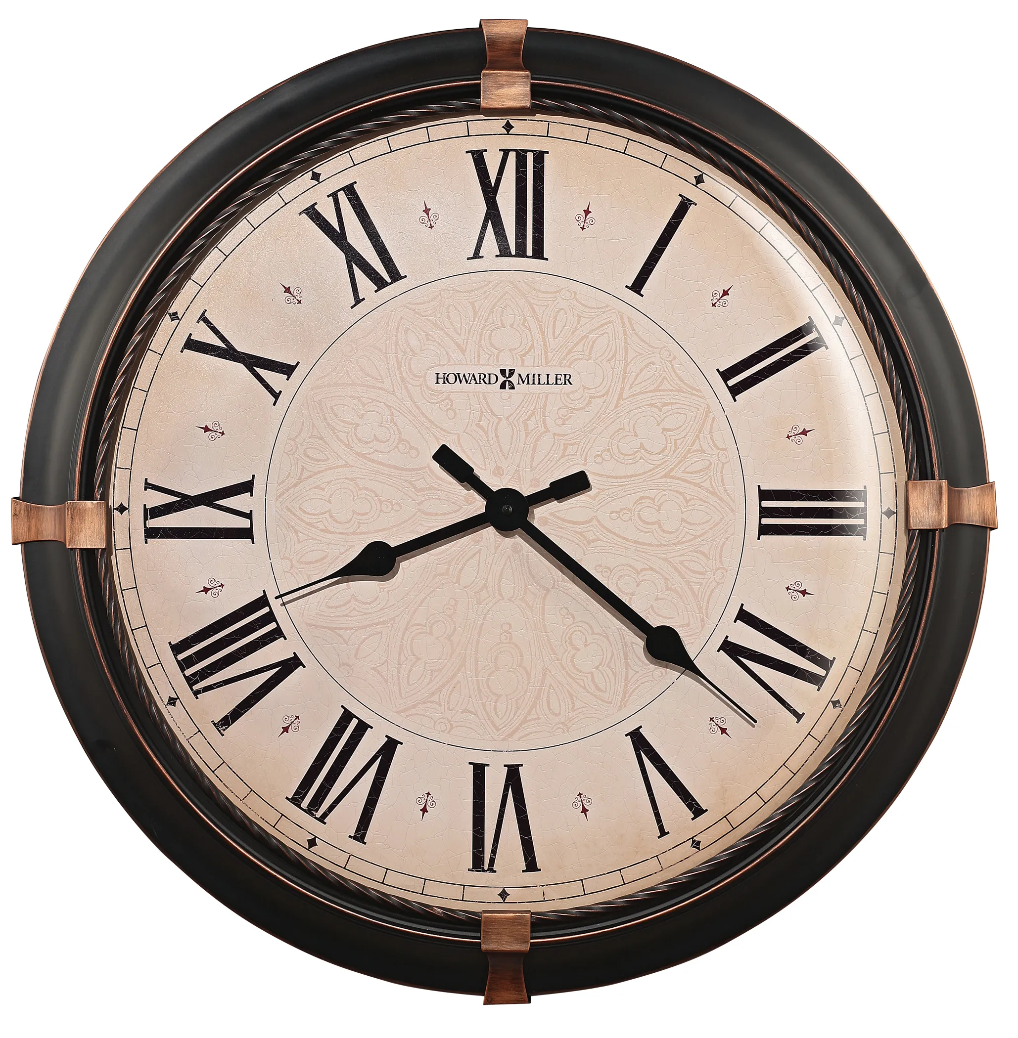 - WALL CLOCK: This Atwater Oversized Wall Clock is a metal clock with a dark rubbed bronze finish and aged bronze accents at the 3, 6, 9, and 12 positions to complement your home decor. The clock’s quartz movement makes a soft ticking noise without the use of chimes for a quieter environment. DURABLE: This indoor vintage clock is created to last. It has a sturdy metal frame to relieve stress in a busy household. Display it in your kitchen, office, bathroom, bedroom, living room, and more. HIGH QUALITY: The circle design will ensure you can read the time anywhere in the room. Easily tell time with a subtle center pattern, large aged black Roman numerals, black spade hands, convex glass crystal, and a twisted metal ring that frames the aged dial. MOVEMENT: It is powered by quartz movement and requires one AA sized battery. HOWARD MILLER: Founded in 1926 and still family-owned in its third generation, Howard Miller is the world’s leading clock company and a respected brand name in fine specialty furnishings such as curio cabinets, wine & bar furnishings, custom storage cabinets, and SmartMoves® adjustable height desks.