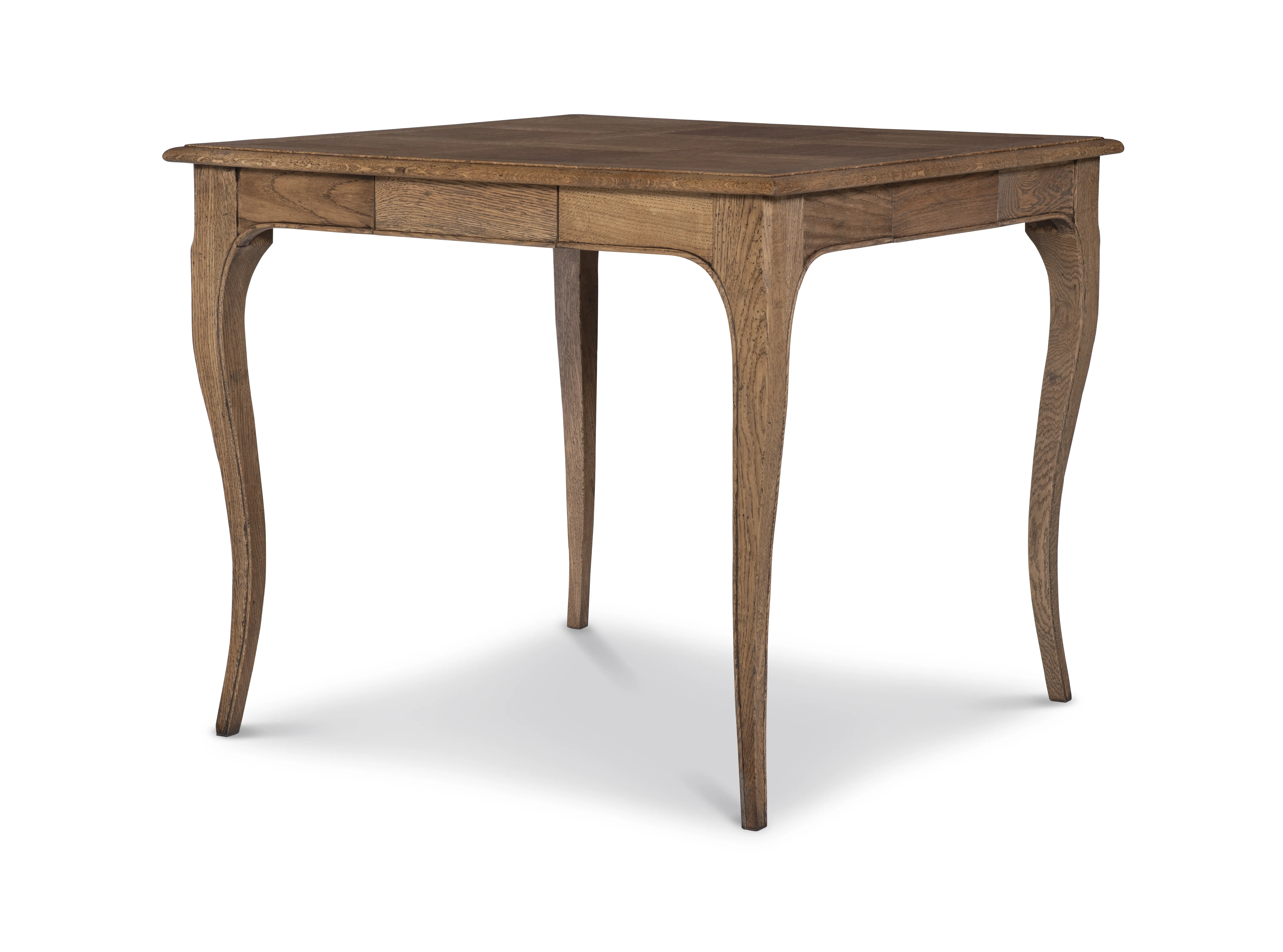Crafted in Oak solids and veneers in an aged and natural finish, the Hamilton Game table features a beautiful interwoven veneered pattern on the top with four small working drawers on each side and delicate cabriole legs. Perfect for the corner where games take place.