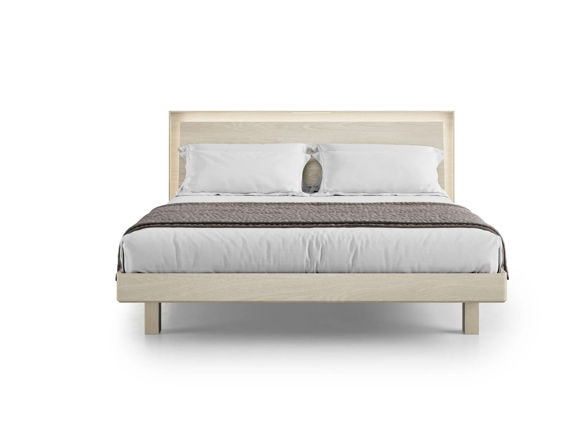 A soft, ambient glow at the headboard enhances any setting. The touch-sensitive brass bar allows for easy on/off control and smooth dimming adjustments.