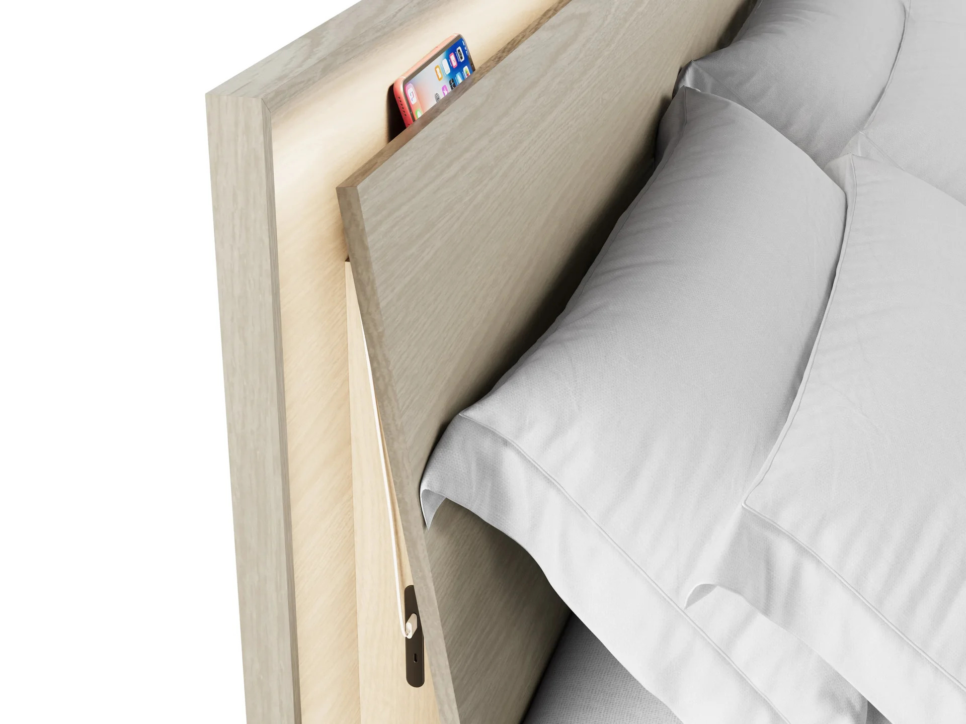 Discreetly positioned on both sides of the headboard, dual USB-C power stations keep your devices charged and within easy reach—so your phone, tablet, or smartwatch is always ready for the day ahead.
