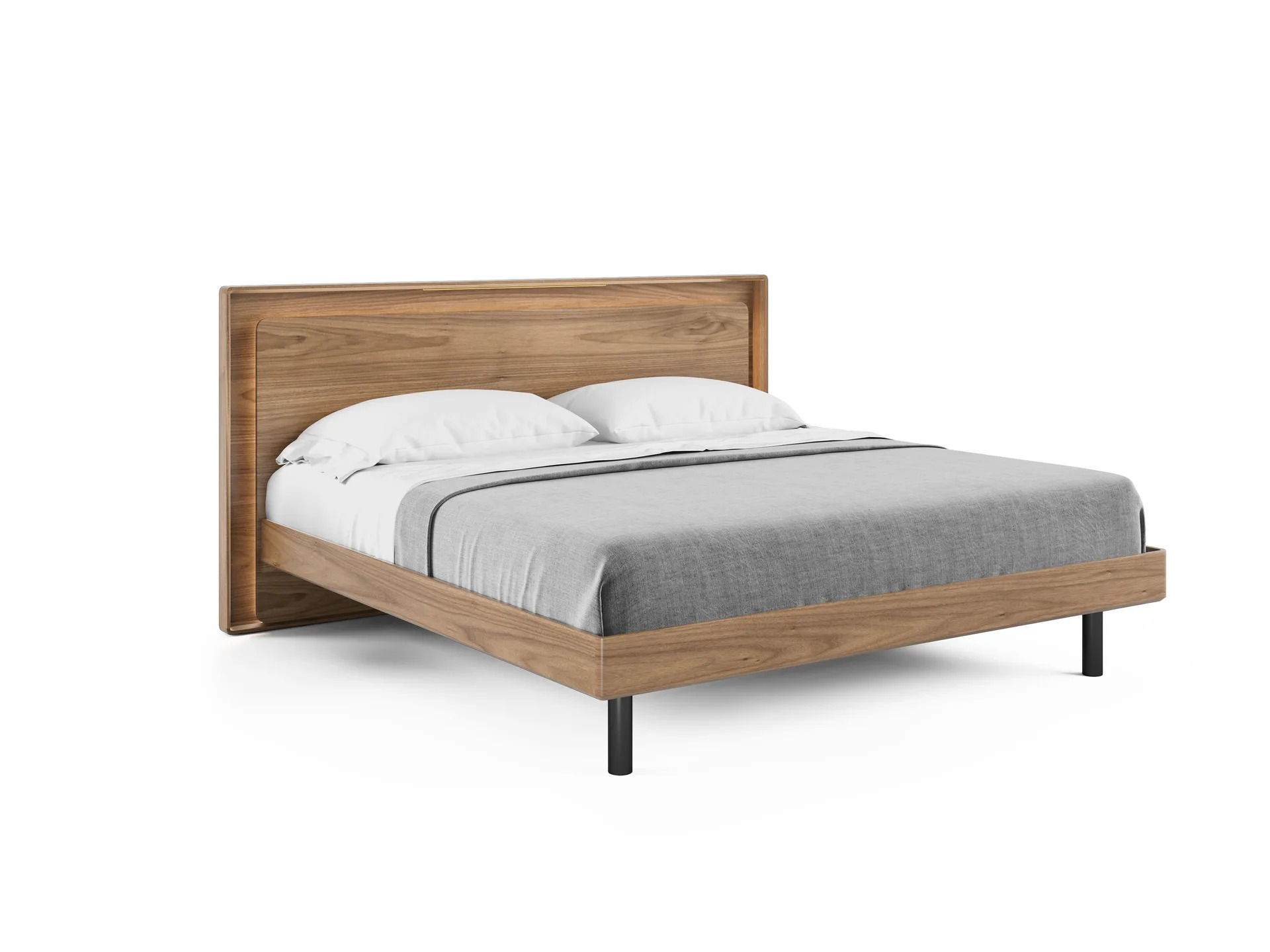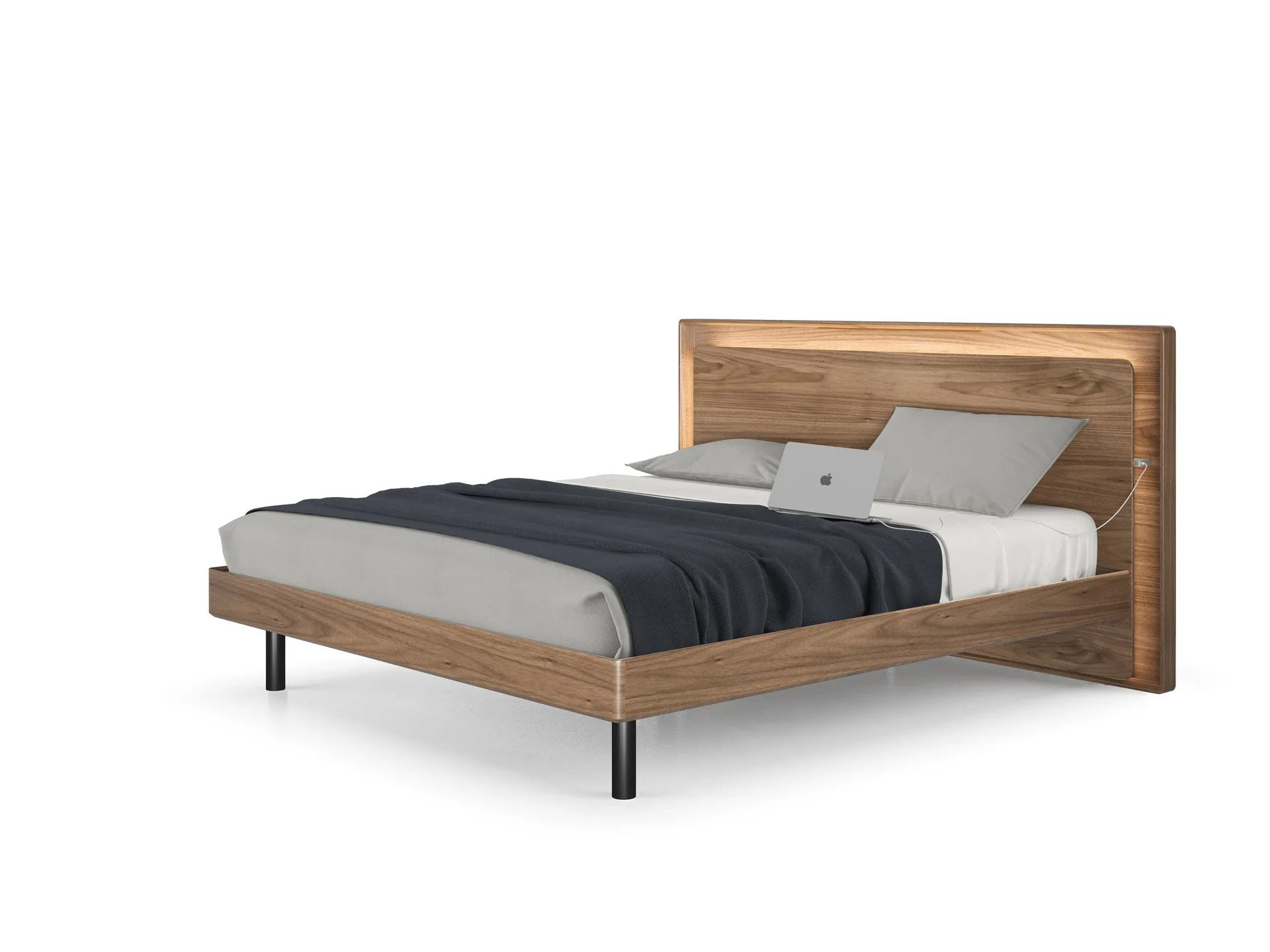 Up-LINQ's headboard features a floating wood panel that conceals a power station on either side of the headboard. It includes three outlets and a USB-A and USB-C port for convenient charging. Compatible with the Contour Headboard Cushion
