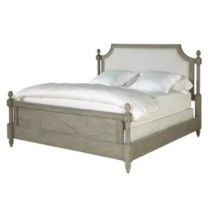 - Break front headboard top with flat posts and corbels and three overlay molded panels.