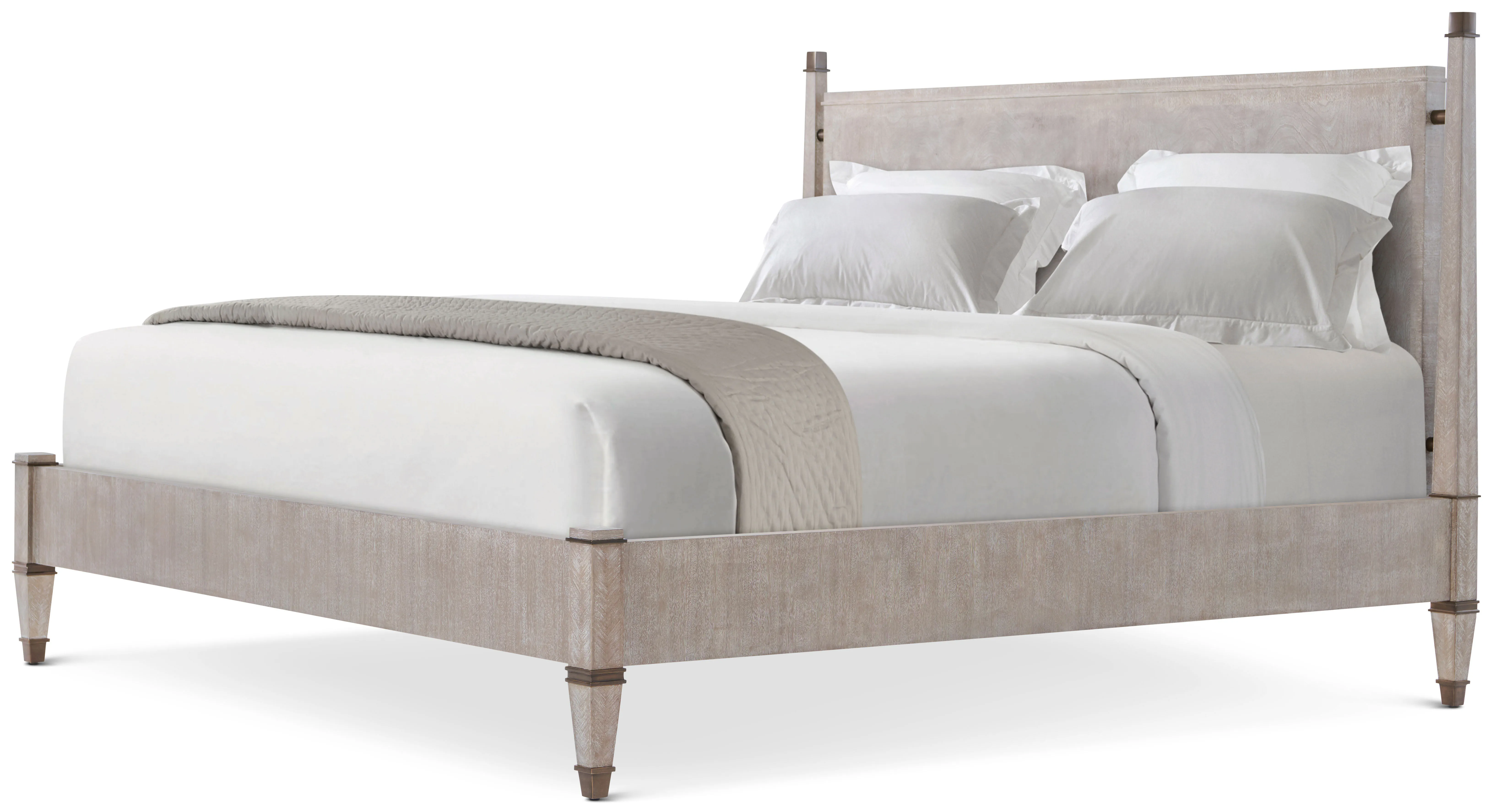 The Markos Wooden US King Bed pays homage to the minimalism of classic Art Deco design. Markos' sleek wooden headboard commands attention, showcasing the beauty of the rich khaya swirl, and features like stout tapered legs with Hampton Brass caps and lustrous decorative ferrules imply an air of subtle luxury. Markos has been handcrafted from khaya swirl and is finished in a choice of two colorways, Cambridge or Geo Coast.