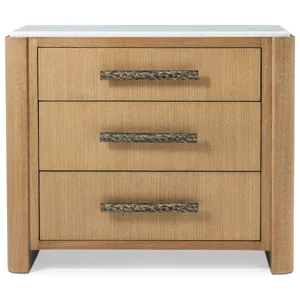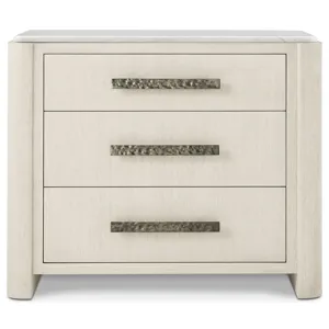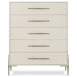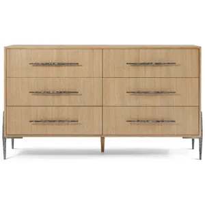 An alluring blend of white oak and hand cast metal. The Essence Dresser combines gentle contours with textured grain patterns and pulls.