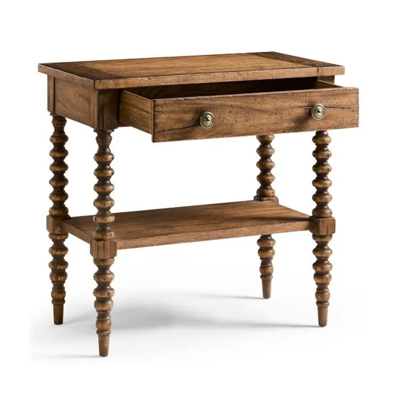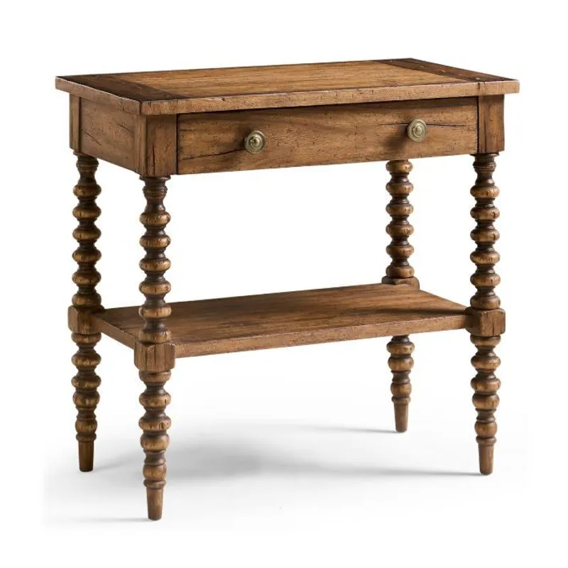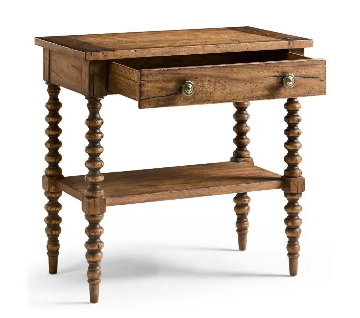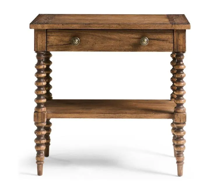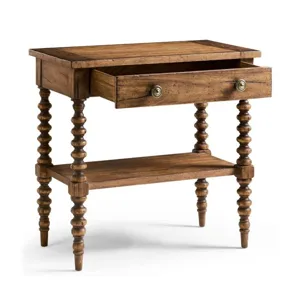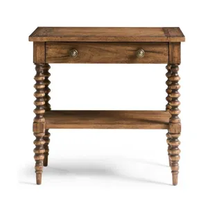 The Tamarisk 32in Nightstand captures the charm of traditional woodworking in a form that’s both elegant and functional. Crafted from acacia and finished in a warm Medium Spain Walnut, this piece features intricately turned legs and a shaped lower shelf that lend timeless character. A single framed drawer with antique brass hardware provides convenient storage, while the raised top edge adds a tailored finishing touch. With its refined detailing and versatile scale, this nightstand makes a graceful companion to any transitional bedroom setting.