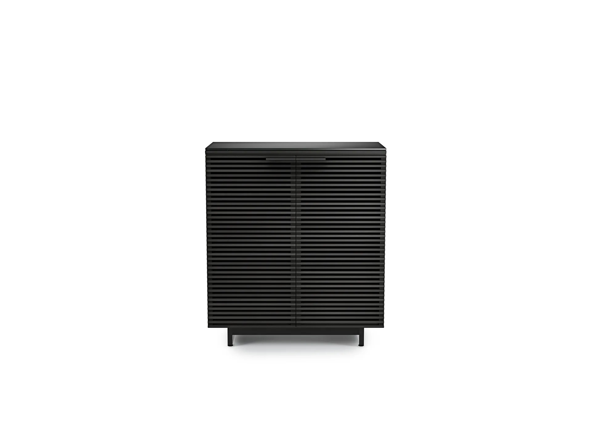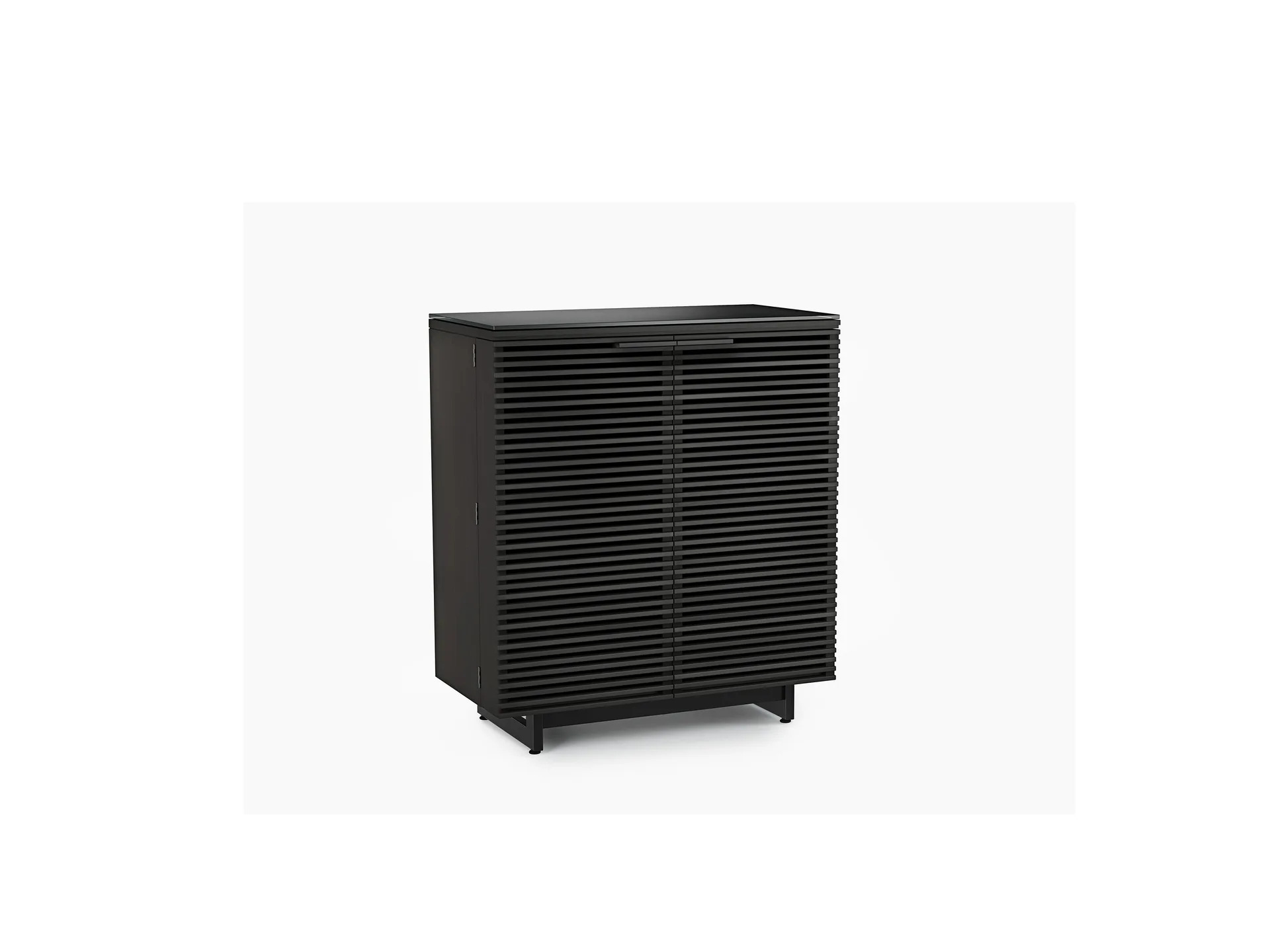 Featuring solid louvered doors and a satin-etched glass top, the Corridor collection includes media and storage cabinets of all sizes that ensure components stay out-of-sight while air, sound, and media signals pass freely through.
