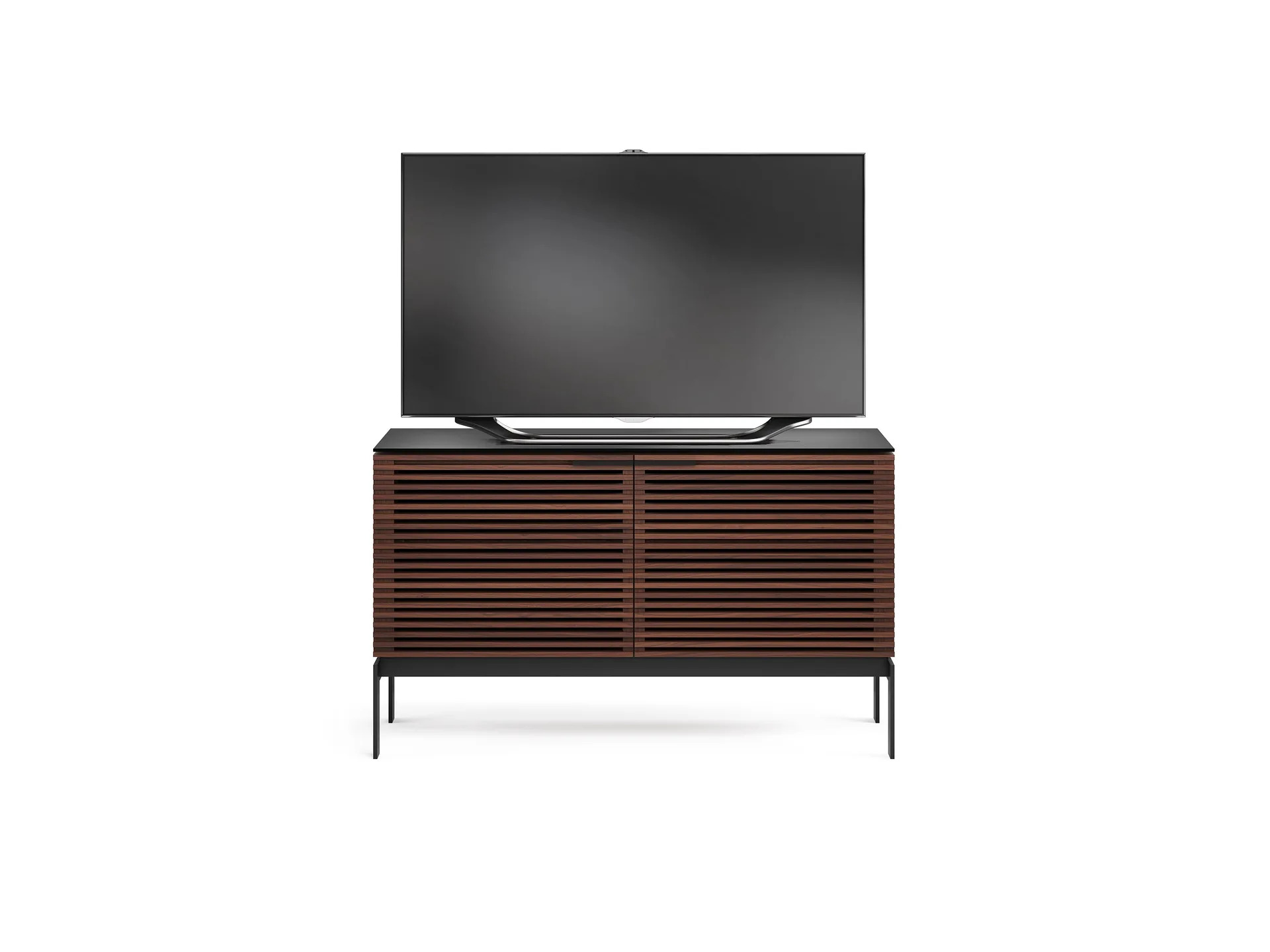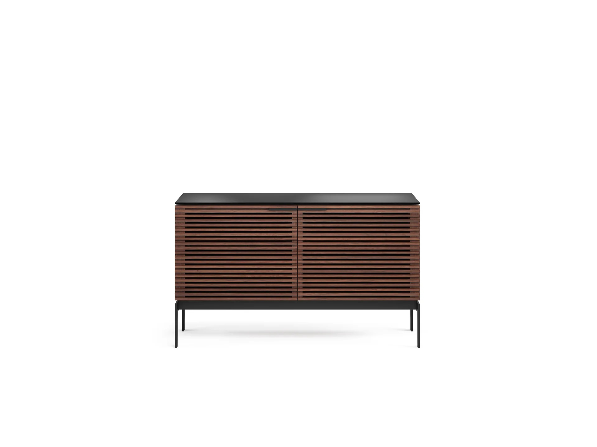 A design that easily transitions from media cabinet to all-purpose furniture, with louvered doors that ensure components stay out-of-sight while air, sound, and media signals pass freely through.