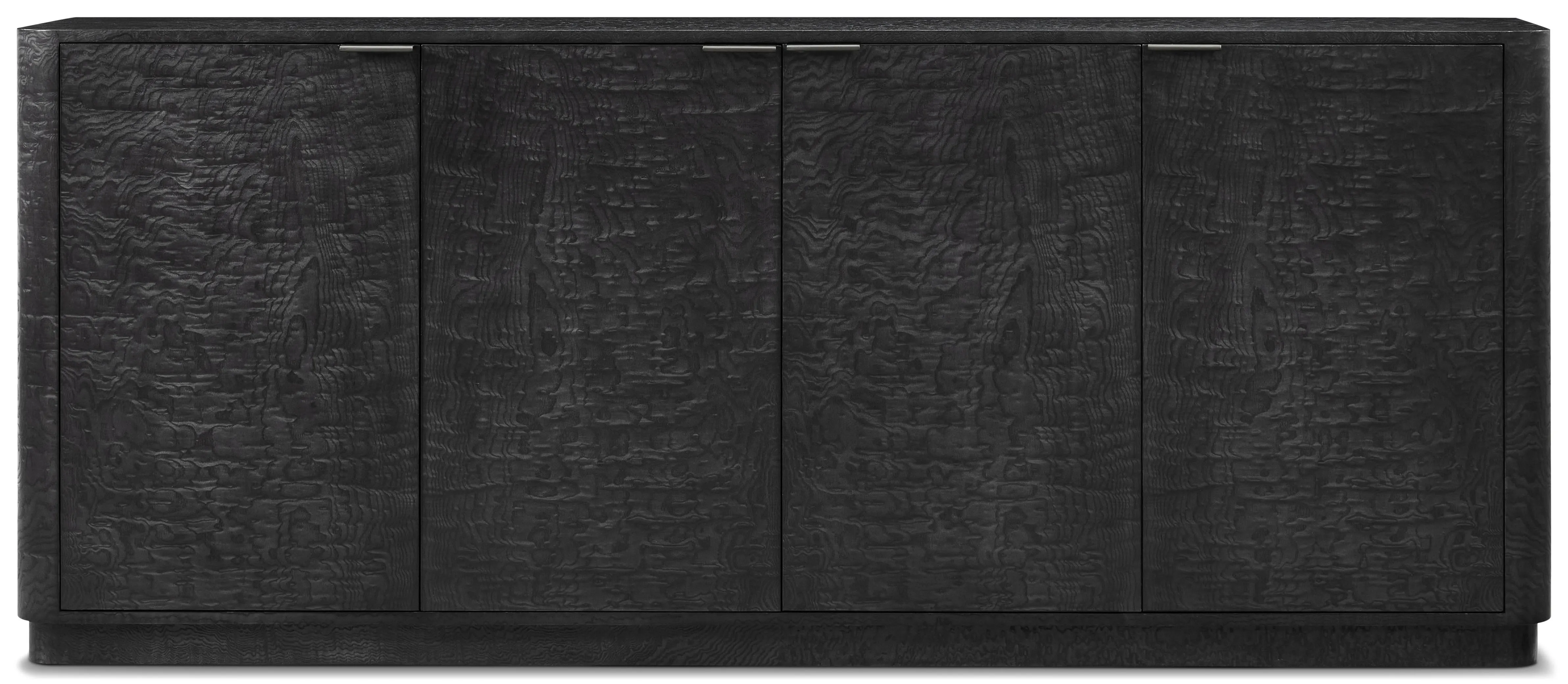 An expansive sideboard shown in an exquisite Tamo ash burl veneer. The Kesden 4 Door Sideboard is a rich focal point for the dining room.
