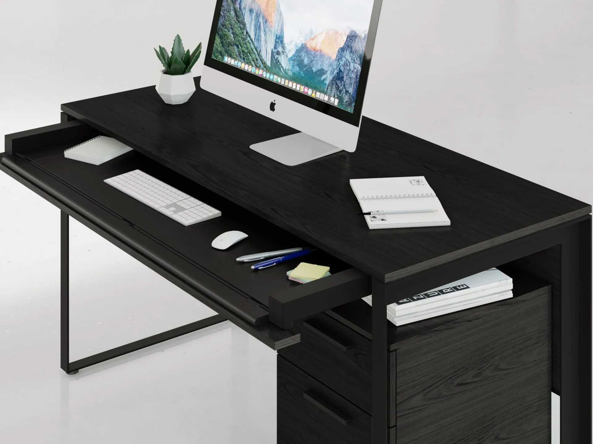 Modern and clean in its design, the Linea Desk features a generously sized wood top, a full-width keyboard/storage drawer, and intelligent wire management to keep things organized.
