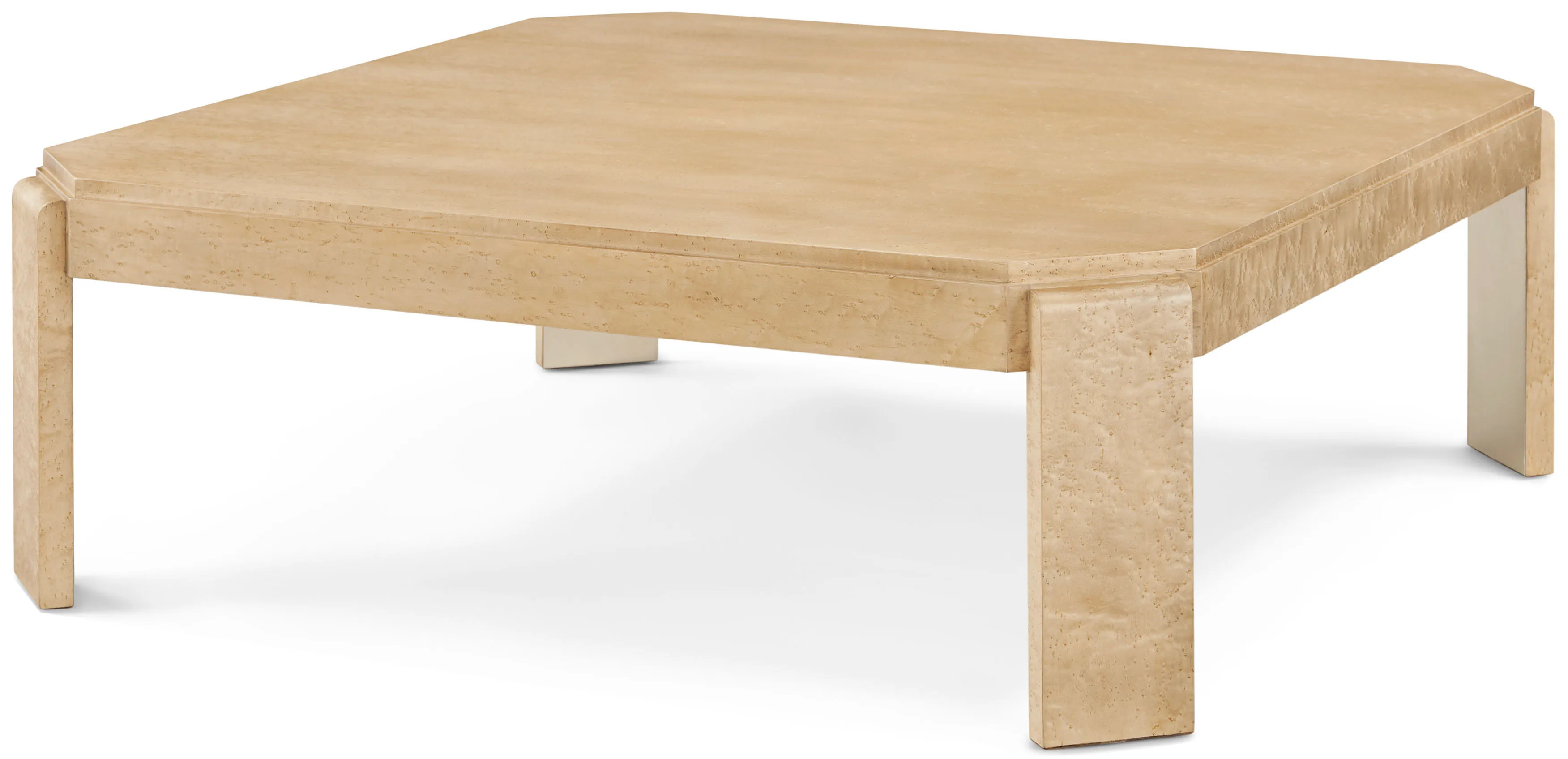 The Origins Square Cocktail Table recalls the modern romance of Art Deco. Handcrafted in birdseye maple and accented with metal details in Starlight. Finished in a choice of Sesame or Landmark.