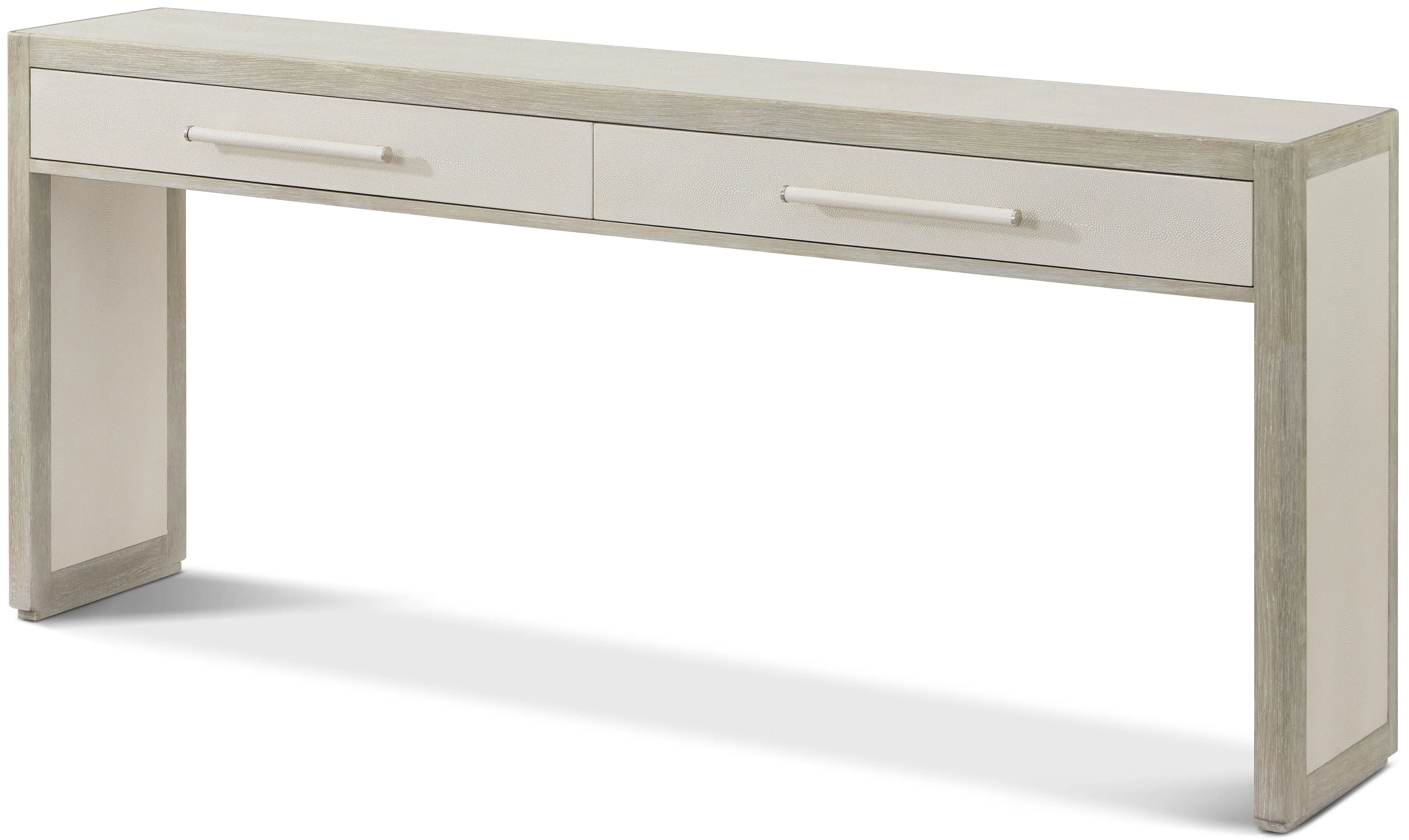 The Maxwell collection features textural shagreen surfaces and versatile oak furnishings in Obsidian and Cashmere finishes. Its sculptural design adds an elevated, modern touch to the spaces they inhabit.