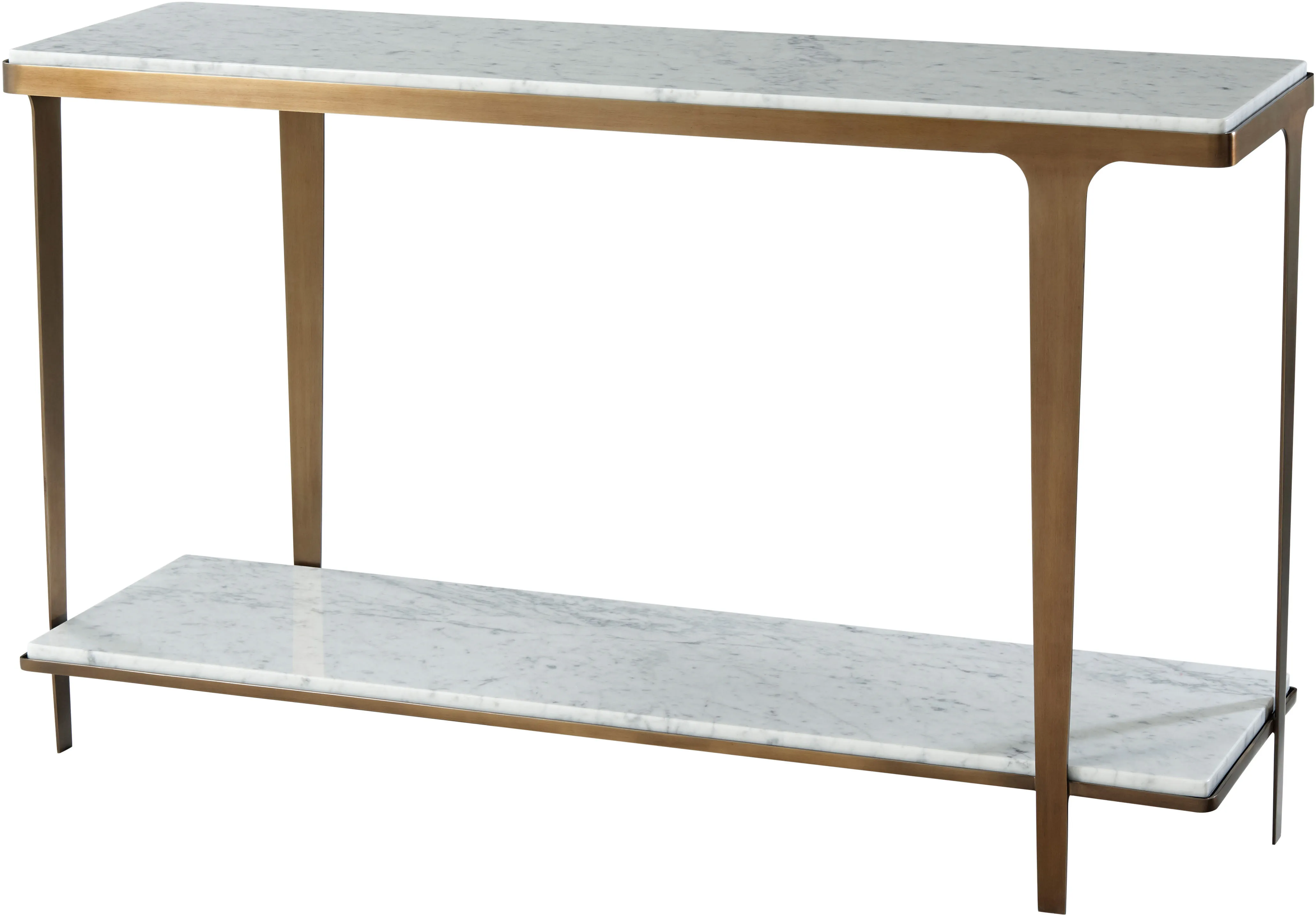 Console Table Bianco Carrara Marble Inset Top & Undertier Brushed Pyrite Finish Steel Frame with Tapering Legs