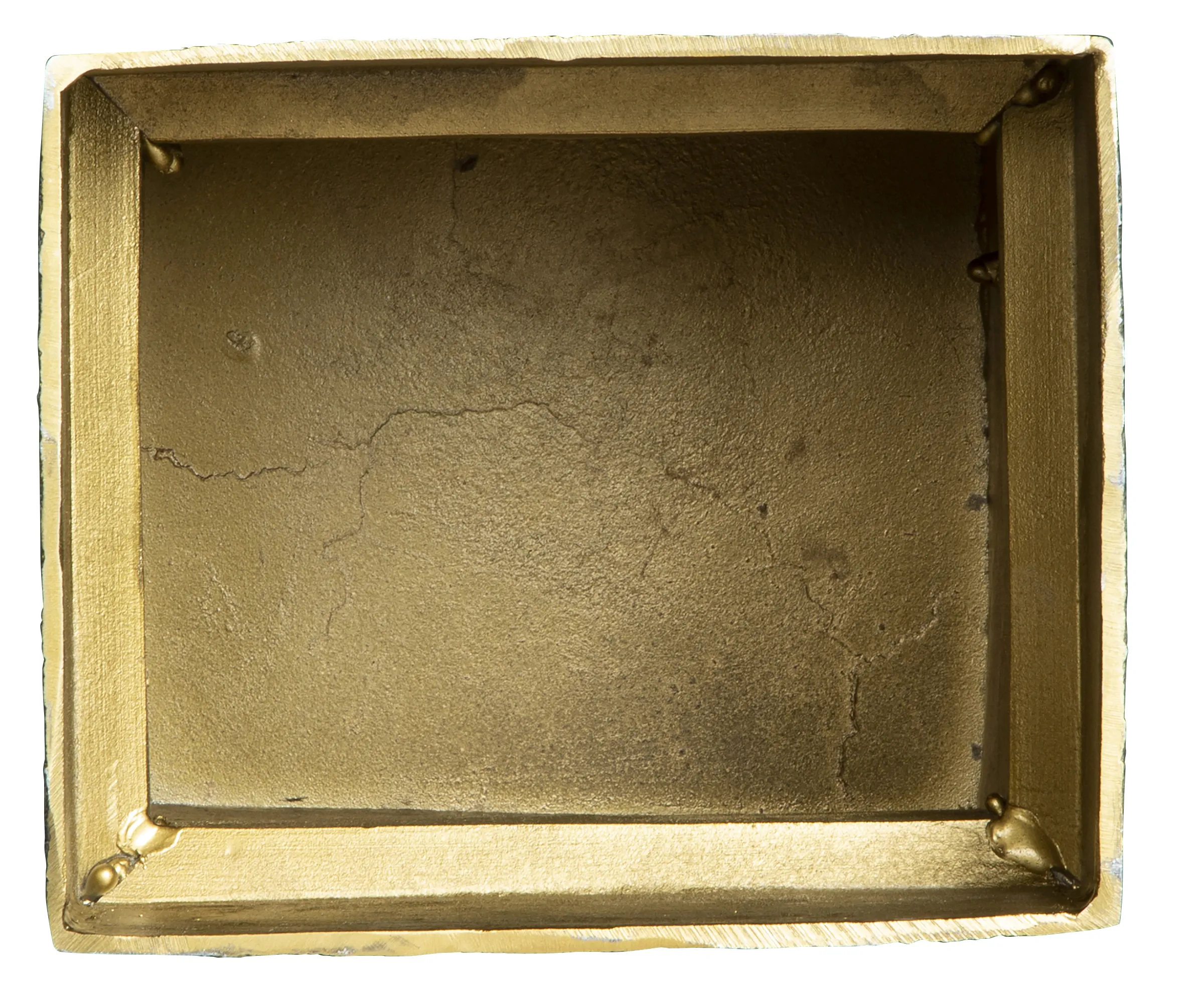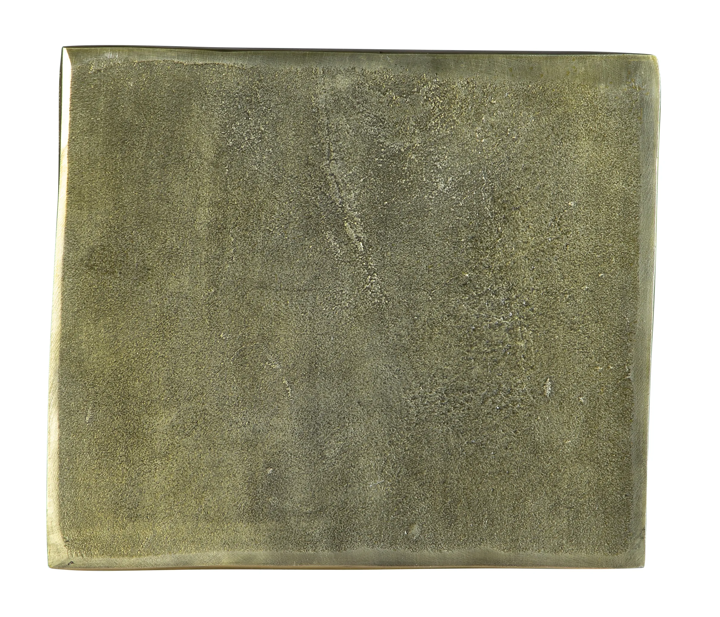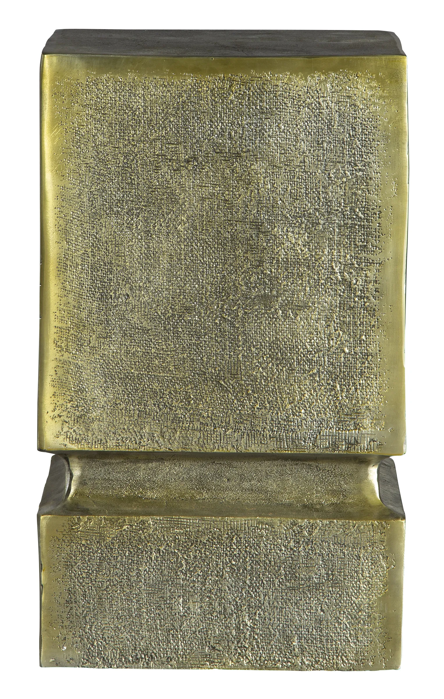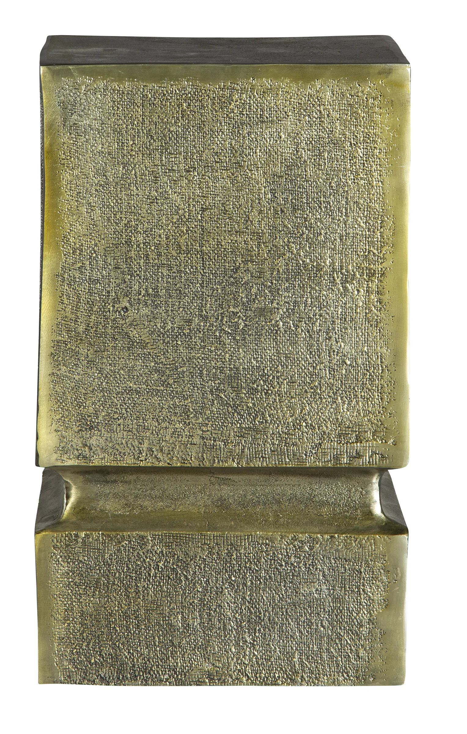 - Cast metal rectangular block side table features a roughened surface.