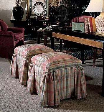 Casters available as a custom option. Dressmaker's skirt w/ Kick Pleat is standard.